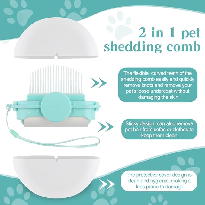 - 【Hair Removal】The flexible curved teeth of the hair removal comb can easily and quickly remove knots and remove your pet's loose undercoat without damaging the skin. Adhesive design can also remove pet hair from sofas or clothes and keep them clean.