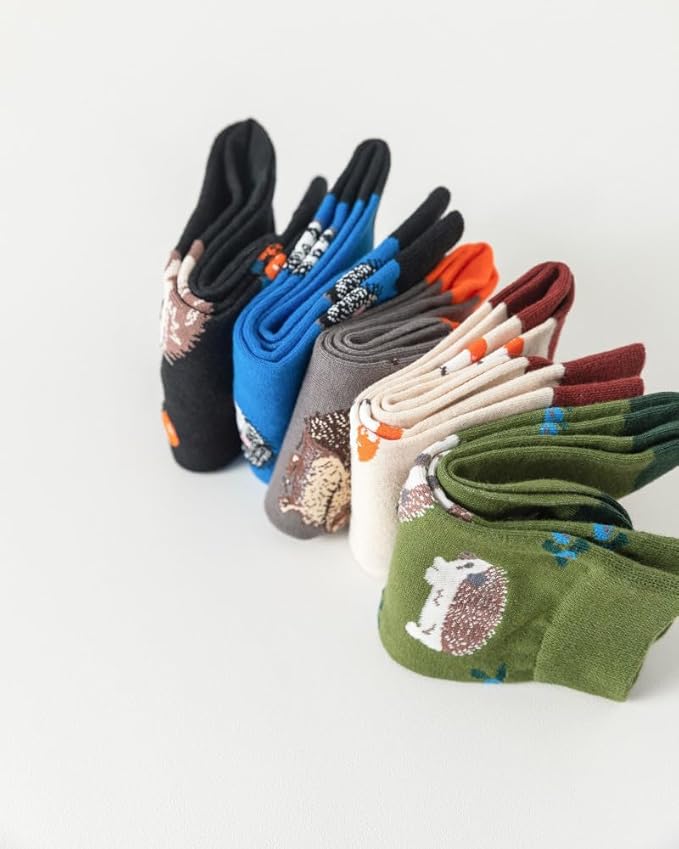 5 Pairs Cute Animal Crew Socks Fun Casual Cotton Calf Socks for Women