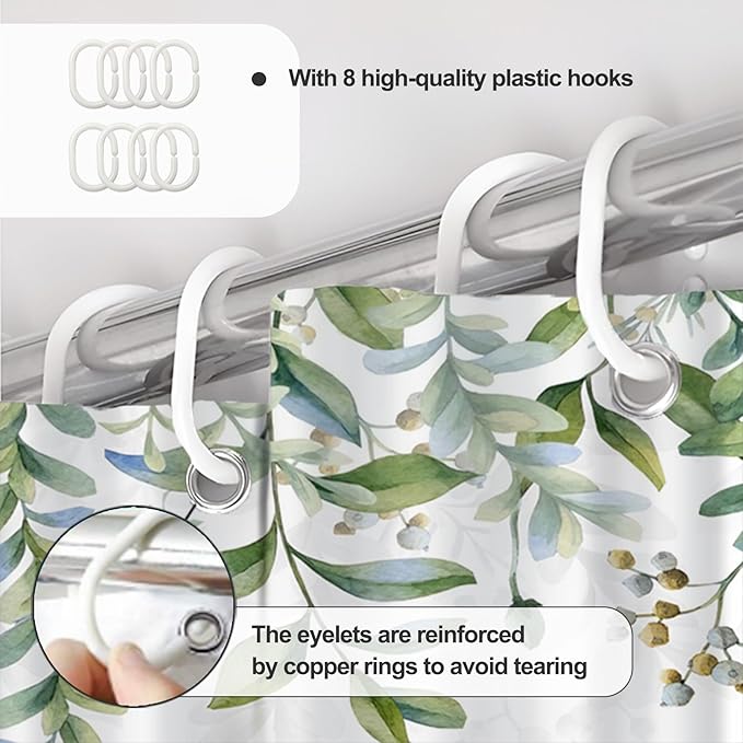 - 【DECORATIVE SHOWER CURTAIN】 Spring shower curtain with sage green leaves branch which freshen up your bathroom .The beautiful artistic atmosphere will make you feel relaxed while taking a bath.