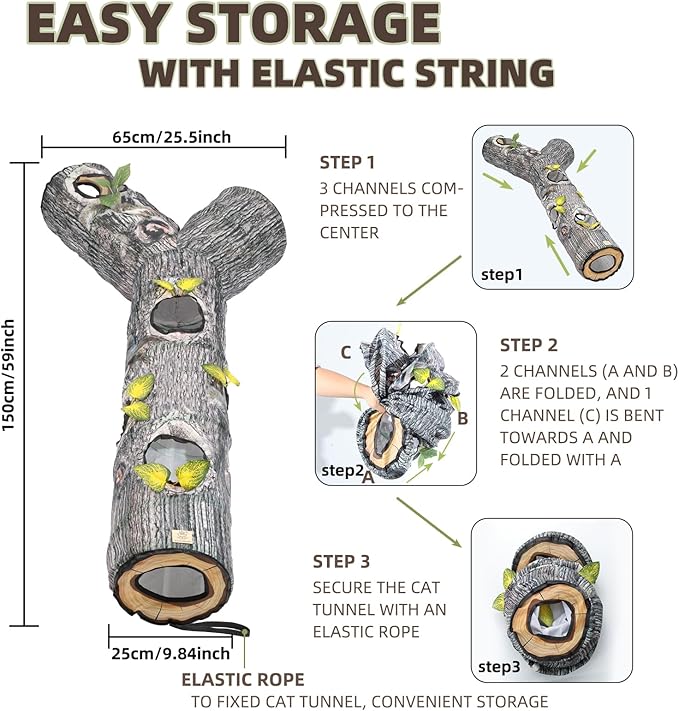 Cat Tunnels for Indoor, Large 3 Way Cat Tube Self Play, Cat Play Tunnel Toy for Indoor Exercise, Collapsible Interactive Peephole Pet Tunnel for Cat Kitty Kitten Puppy Rabbit L 59"