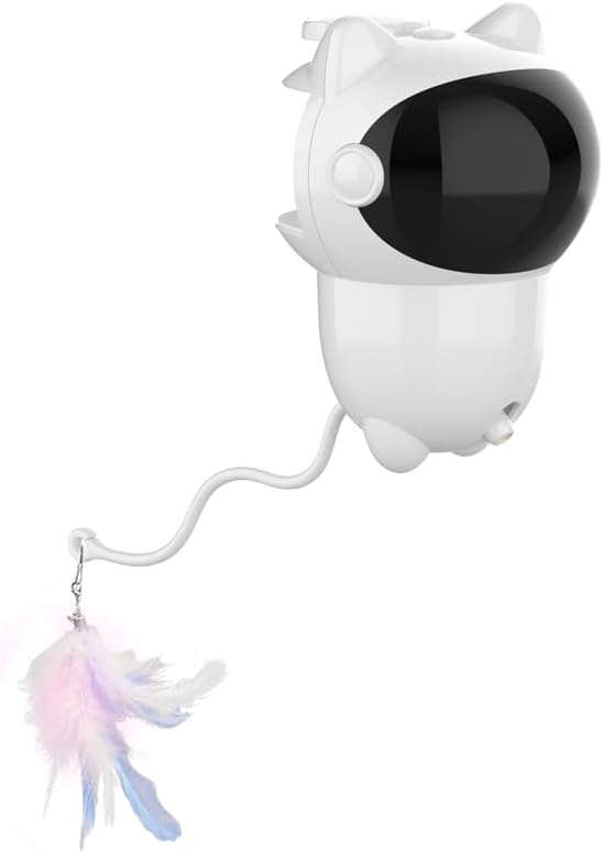 Interactive Cat Toy Feather Teaser Toy with LED Light, Automatic Moving Feather Wand for Cats