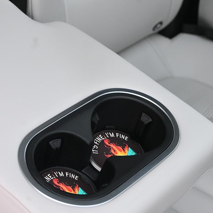 Car Coasters for Drinks Absorbent,2 Pack Cup Holders,2.56" Ceramic Stone & Non-Scratch Cork Base Coasters,Auto Accessories for Women & Men,Fire Dumpster It's Fine I'm FineEvervthing