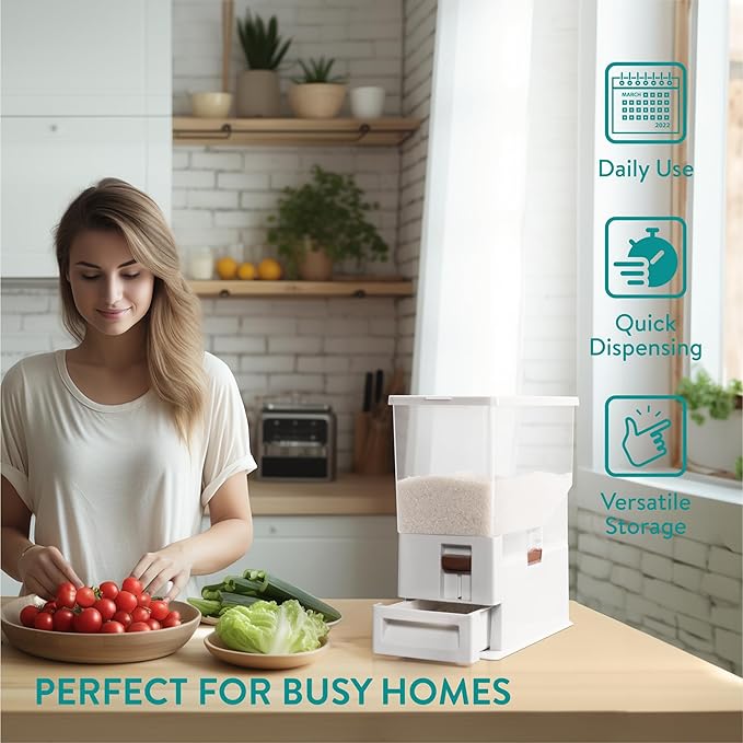 - Fast and Convenient: Our Pet Food Storage Container offers a quick, convenient solution for pet owners and caregivers. Easily access your dog food bin without the need for a scoop, saving you time and effort.