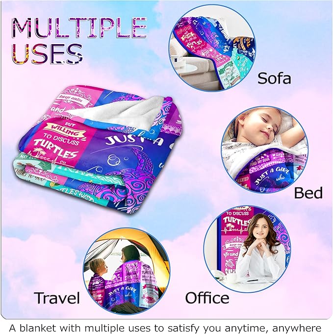 - Best Gift Choice: This Is A Great Gift idea For Turtle Lovers. Add Extra Texture To Your Living room, Bedroom, Or Office With This Turtle Theme Gift Blanket And Its Fun Design. You Can Also Use It As A Birthday, Graduation, Anniversary, Mother'S Day, Father'S Day, Grandparents Day, Christmas, Easter, Halloween, Thanksgiving Day And Other Important Holiday Gifts.