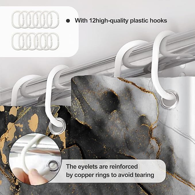 - 【STURDY MATERIAL】The premium material of this shower curtain marble design is lightweight but not too sheer.It has a nice marble texturewhich can help you keep away from moist environment and protect the privacy.