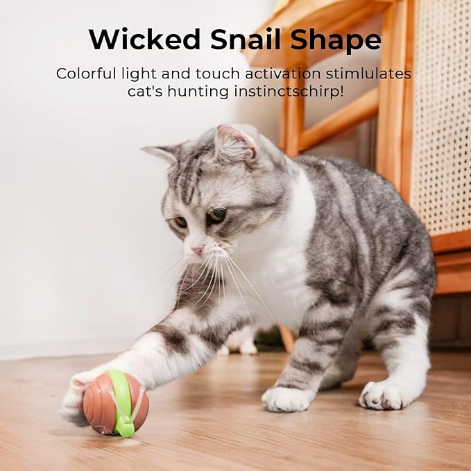 - 【Release Nature Instinct】It's Wicked FUN!! With its bionic snail design and characterized by unpredictable movements, the Wicked Snail entices with light and motion, awakening your cat's natural hunting instincts and encouraging active play.