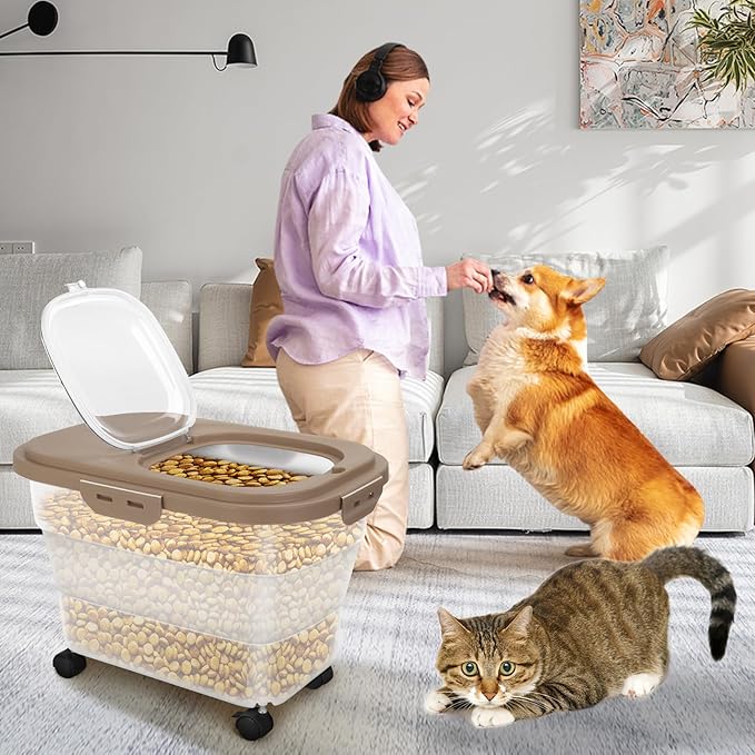 - VERSATILE USE: It's more than just pet food storage containers, you can also use it for storing dog treats, rice, cereals, flour, coffee bins, snacks...Definitely a good helper in kitchen as storage bin.