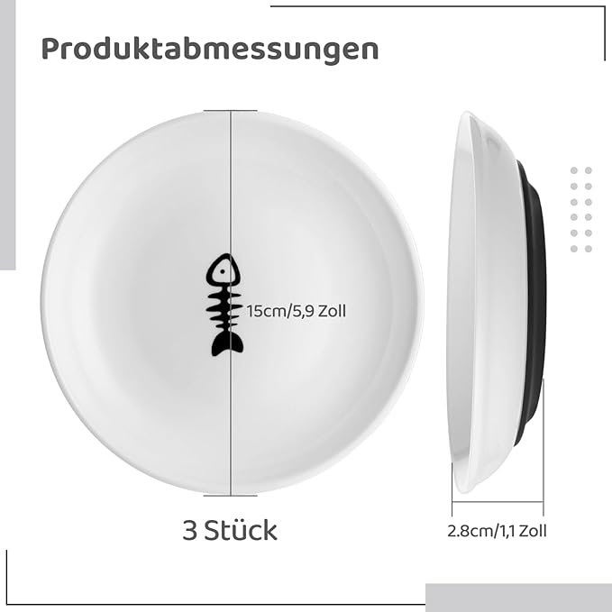 - 【Set of 3 Pieces】 Get a set of 3 charming ceramic cat feeding dishes, each with a 15cm/6'' diameter. Perfect for serving dry food, wet food, canned treats, snacks, or water. Adorned with an adorable fishbone design, these plates add a touch of style to your home decor.
