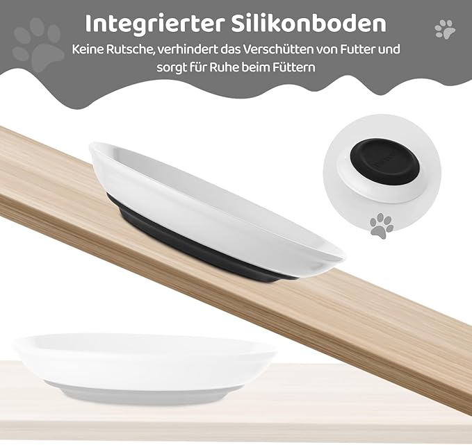 - 【Non-slip Silicone Bottom】 Our ceramic cat dishes feature an integrated silicone bottom to prevent sliding and food spills during meals, greatly reducing the clean-up of mealtime messes. Plus, the silicone pad ensures a quiet dining experience without floor friction noise.