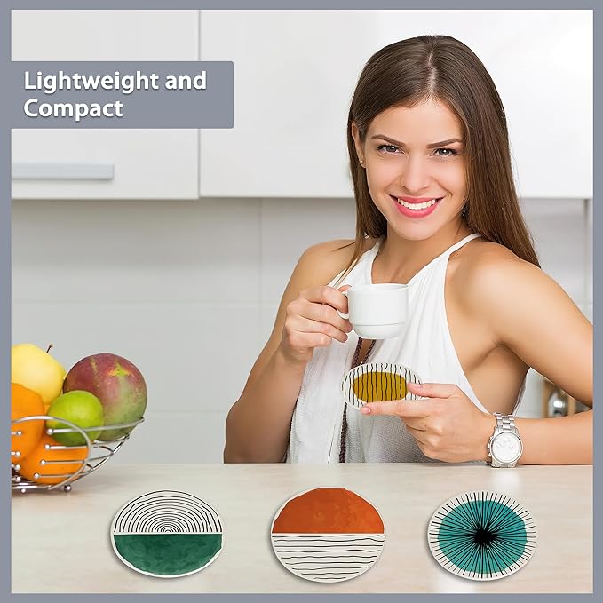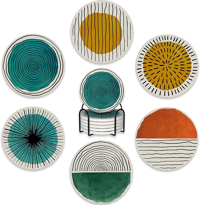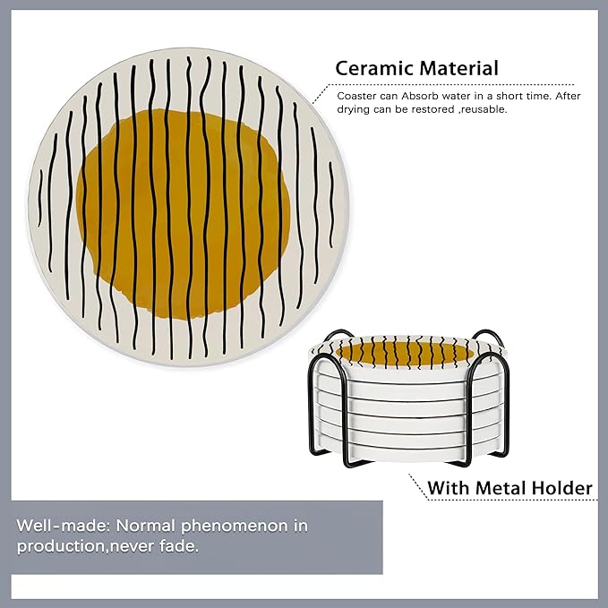 - 【Coaster with Metal Holder Set】The set includes 6 round ceramic coasters and metal coaster holder.
