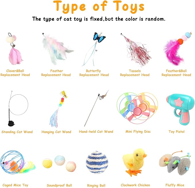 - 【High interactivity】The wide range of toys in this set means that you can mix and match playtime to suit your cat's preferences. Let them choose their favorite from this selection, ensuring hours of interactive play with your cats.