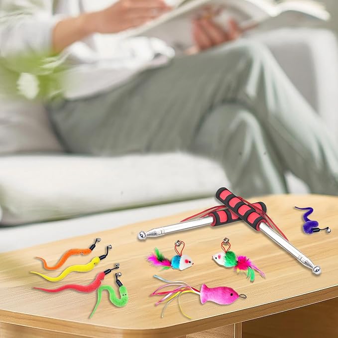 - Retractable Fishing Rod: This unique telescopic cat wand can be adjusted,which can provide better control for different distance.