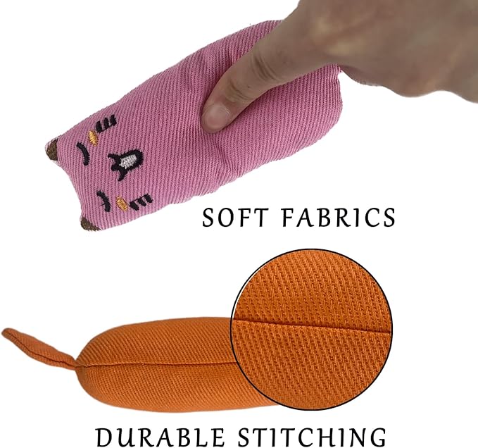 - 【Catnip Toys】: The cat chew toy is filled with catnip and it made breathable fabric stuffed with soft PP cotton to allow your cats smell the catnip easily and make your cats be more interested in playing with them. Most cats respond to catnip with a burst of energy, or frenzied behavior, followed by a period of blissful relaxation.