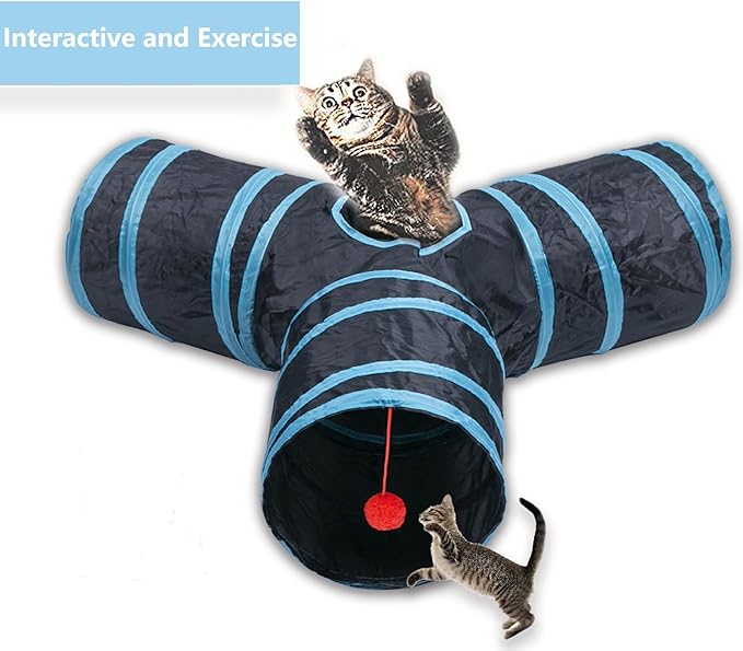 Cat Tunnel Tube Toys,Tunnels for Indoor Cats, 3 Way Blue Collapsible Interactive Toy with Balls for Rabbits, Kittens, Ferrets, Puppy