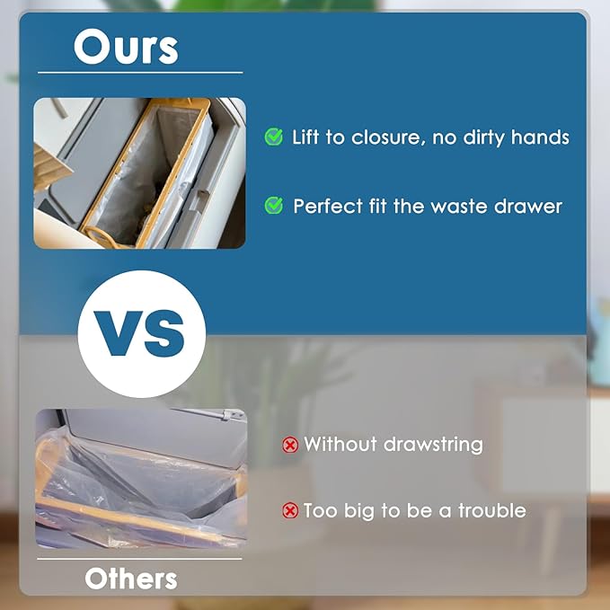 - Drawstring Design: Our heavy duty cat litter trash bags compatible with automatic cat litter box are designed with convenient drawstring, you just need to grab the drawstring and lift them, these cat litter bags will tighten automatically, preventing any spills, you won't worry about dirtying your hands in the process!