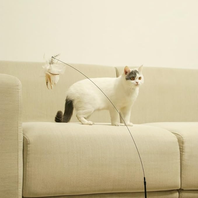 - Feather Head with Built-In Bell: Adding an extra layer of excitement, the feathered attachment comes complete with a built-in bell. The auditory stimulation enhances the overall play experience, capturing your cat's curiosity and creating an interactive and dynamic environment.