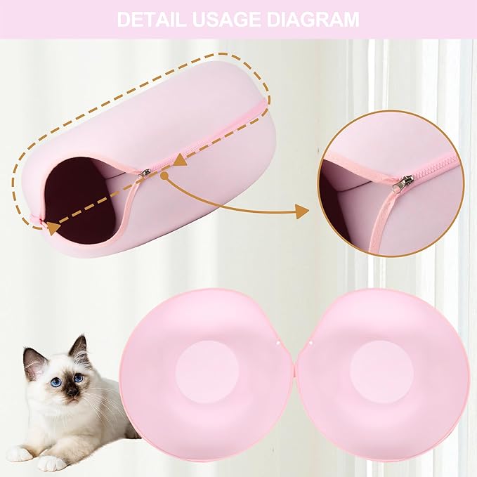 Cat Tunnel Bed, Cat Cave Bed ,Beds for Indoor Cats - Large Cat House for Pet Cat Cave ,Detachable Round Felt & Washable Interior Cat Play Tunnel for Small Pets (24 Inch, Pink)