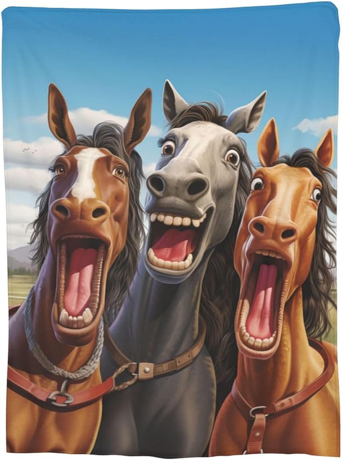 FUUNY Horse Blanket Animal Pattern Print Flannel Throw Blankets for Home Couch Bed Sofa Soft Fuzzy Lightweight Decor Gifts for All Season 50x40 Inches