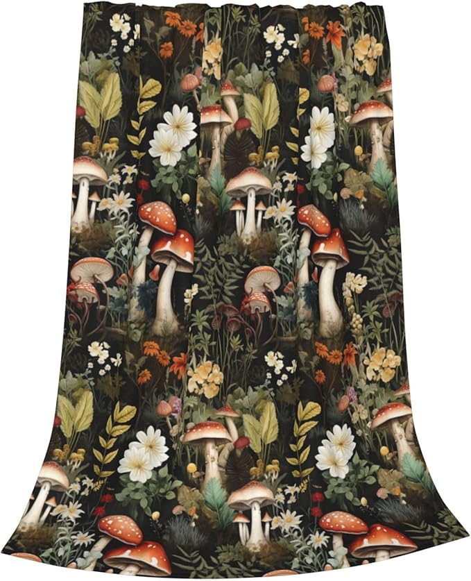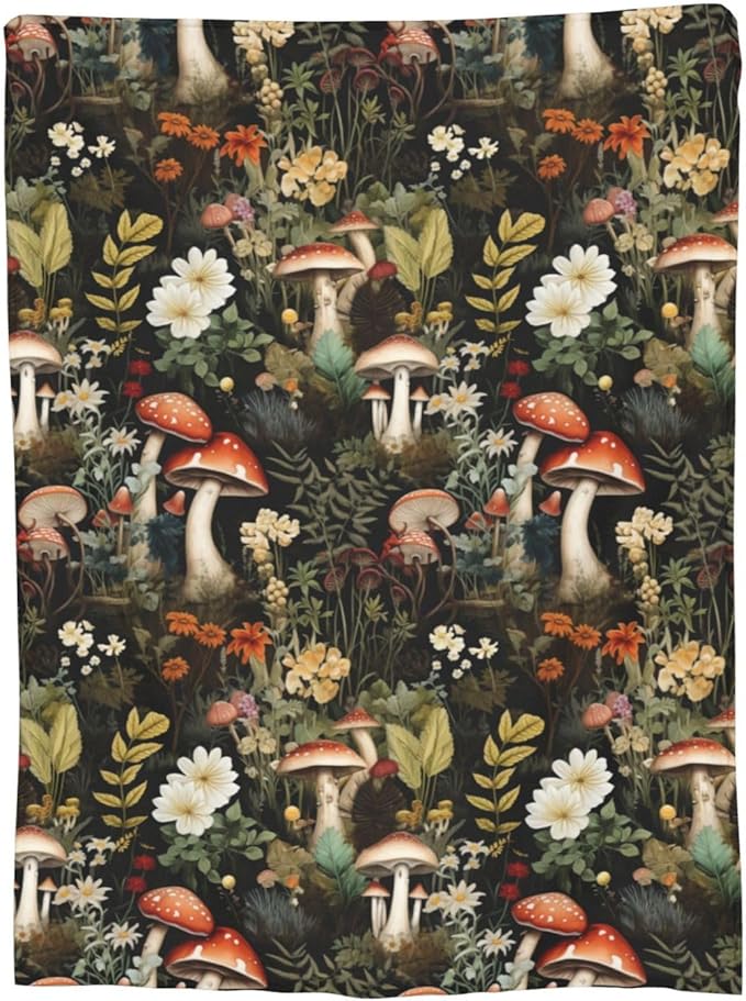 Mushroom Blanket Gifts Floral Weed Flannel Throw Blankets for Home Decor Couch Bed Sofa Soft Fuzzy Lightweight for All Season 60x50 Inches