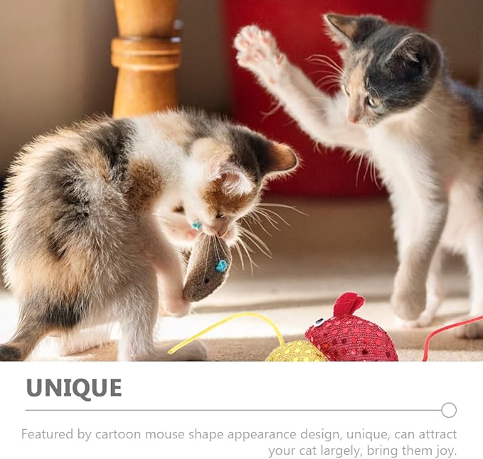 - Unique Design to Capture Attention: Featuring a cartoon mouse shape and adorned with sequin glitter, these toys stand out with their unique design, captivating your cat's attention and sparking their curiosity for hours of playful entertainment.
