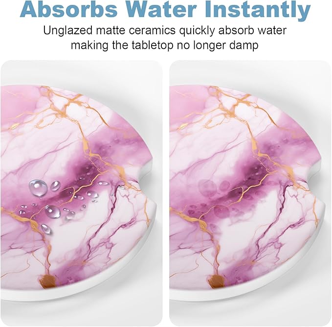 - 【Pragmatic Absorbent Coasters】Our products are not only stylish, but also have strong water absorption. Using unique technology, they have excellent water absorption. Ceramic car coasters are more absorbent than other coasters made of all-softwood, leather, cardboard, and rubber. Don't worry about cold drinks condensing and staining your car. Keep your car dry and clean.