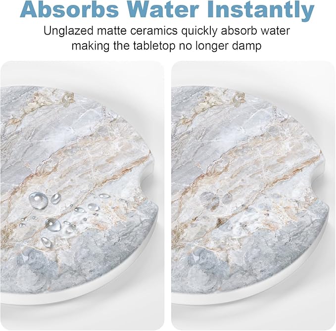 - 【Pragmatic Absorbent Coasters】Our products are not only stylish, but also have strong water absorption. Using unique technology, they have excellent water absorption. Ceramic car coasters are more absorbent than other coasters made of all-softwood, leather, cardboard, and rubber. Don't worry about cold drinks condensing and staining your car. Keep your car dry and clean.