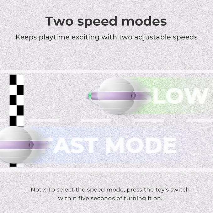 - 【2 Speeds Modes Adjustable】Get Cats Active and Burning Energy.Wicked Snail offers two speed settings,the green lighted band for slow mode and a blue lighted band for fast mode. You can adjust the speed to suit different cats' preferences.This snail-shaped mechanical toy has remarkably held cats' interest for hours,outperforming other motion-sensor toys.Unlike typical toys that jump or roll,this one mimics the movement of natural prey,captivating cats with its realistic motion.