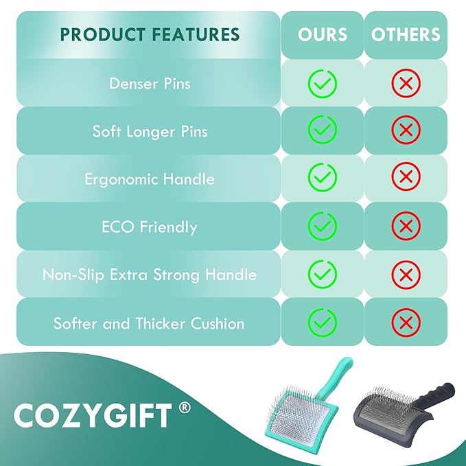 - [100% Guarantee] This slicker brush is well-priced and designed for your convenience. Keep one at home and another in the car for easy grooming on the go. It’s also a thoughtful gift for family, friends, and colleagues—COZYGIFT dog grooming brush is a sweet choice for pet lovers.