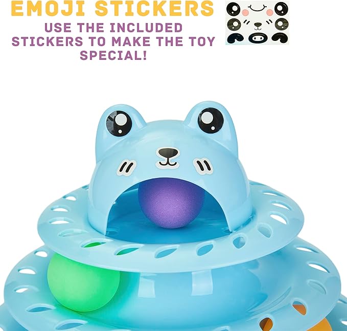 Gefryco Cat Toys Ball Track, Turntable Cat Tower Toy with 4-Tier Roller, Multi-Level Interactive Cat Toys for Indoor Cats, Fun Puzzle Kitten Exercise Toys with Colorful Chase Balls(Blue)