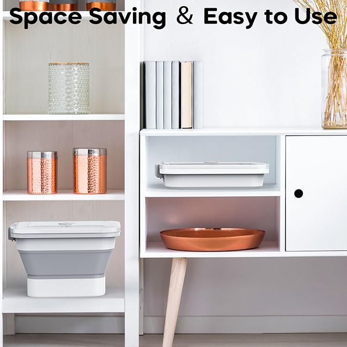 - Super Large Capacity: Our cat food storage container is collapsible and can be resized to store pet food as needed.Unfolded size: 16x10x8 inches, suitable for storing 10-13 pounds of dog food. Folded size:10x16x3 inches, suitable for storing 6 pounds of dog food. foldable design makes it saving space