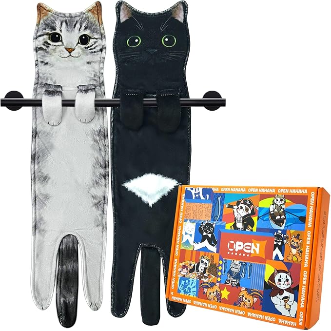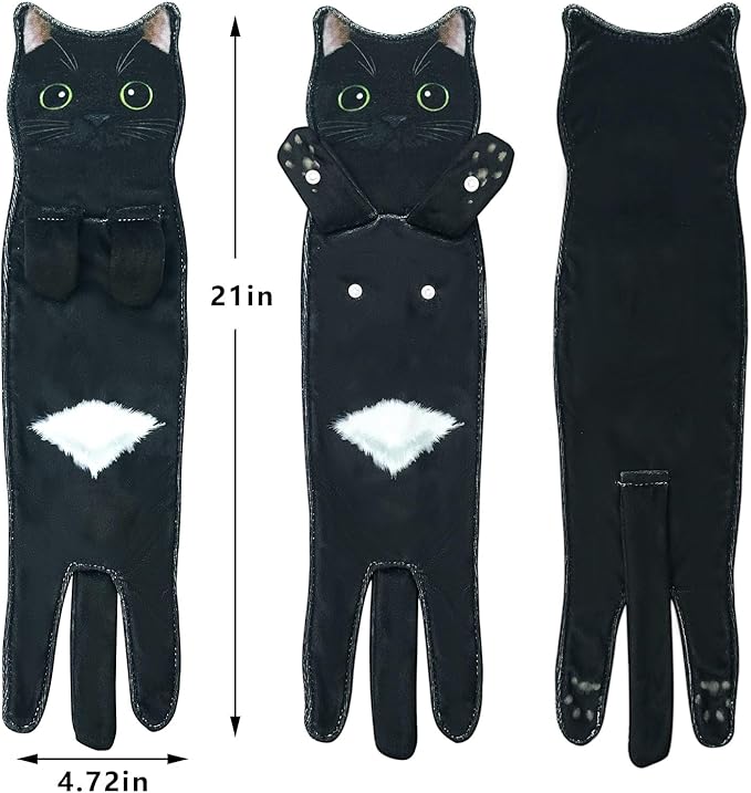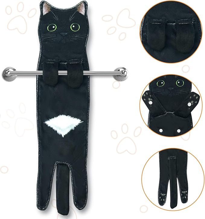 - Cat Funny Hand Towel:Cute Cat Towel hanging on a towel rack, the snap button of the cat's hand prevents the towel from slipping off. When you wipe your hands with the feeling of touching a cat's belly, you will be healed by the soft touch! The funny pattern on the back,tail,and paws is very realistic, so cute that even the towels also make you want to hug them!