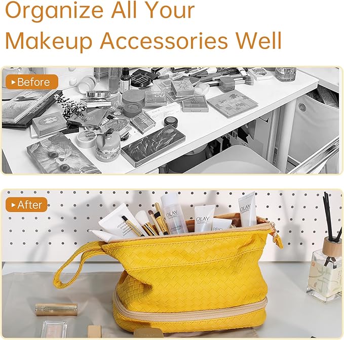 • Smart Multi Functional Design:Functions as both a cosmetic organizer and toiletry bag. Ideal for daily use, vacations, or business trips - keeps makeup, brushes, and skincare products neatly separated
