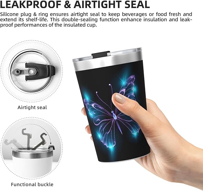 12 OZ Insulated Tumbler Mug with Lid Straw, Butterfly Stars Stainless Steel Coffee Cups for Home Travel Office School Gifts