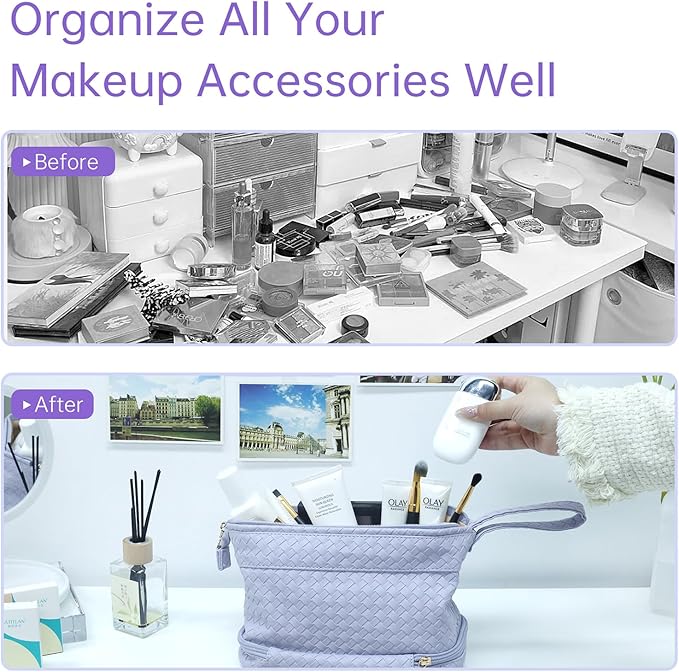 • Smart Multi Functional Design:Functions as both a cosmetic organizer and toiletry bag. Ideal for daily use, vacations, or business trips - keeps makeup, brushes, and skincare products neatly separated