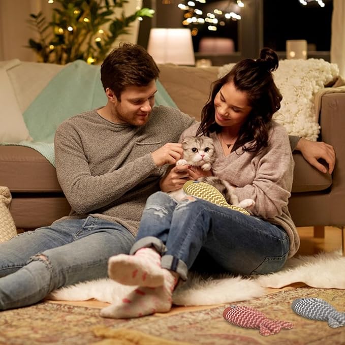 - Indoor Cat Chew Bite Kick Fish: Our plush animal toys can let your kitten hug or snuggle as cat pillows to have a good dream, play to excite kitten's hunting instincts and satisfy the urges to bite, chew and clean teeth as a cat chew exercise toy, as well as an interactive cat toy to cratch or kick, avoid furniture damage.