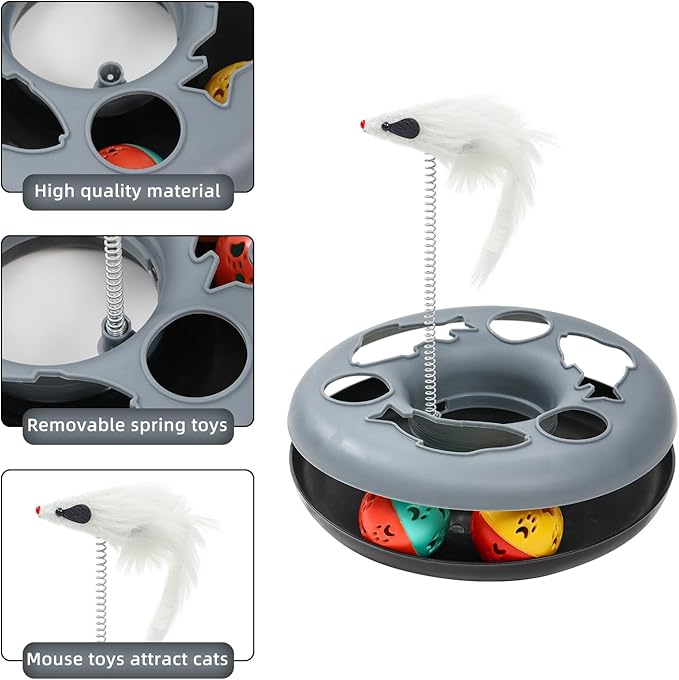 - 【Cat Toys Tunnel】: Cat toys set with tunnel is made of super strong, tear-resistant PP material, guaranteed to withstand your cat's scratching motion. Includes a mouse toy cat teaser that can be inserted or removed for added fun. Comes with two brightly colored bell balls to stimulate your cat's senses and hunting instincts, providing endless entertainment