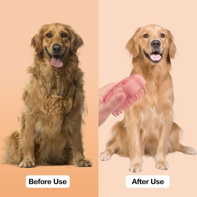- 🛀【Easy To Use】: The HMGES dog brush features a rechargeable design. A single charge lasts for a week of continuous use. Simply add water, pet shower gel, etc., to the water tank, and start it with a single click for a comfortable cleaning experience for your furry friends.