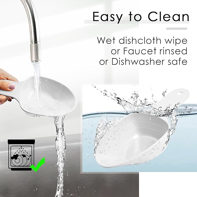- [ HIGH QUALITY MATERIAL ] - Unlike fragile plastic scoops, our dog food measuring scoops are made of high quality melamine. The material is sturdy and durable, not easy to deform or break, ensuring long-lasting use.