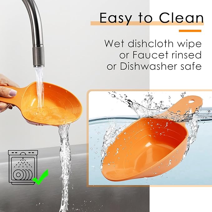 - [ HIGH QUALITY MATERIAL ] - Unlike fragile plastic scoops, our dog food measuring scoops are made of high quality melamine. The material is sturdy and durable, not easy to deform or break, ensuring long-lasting use.