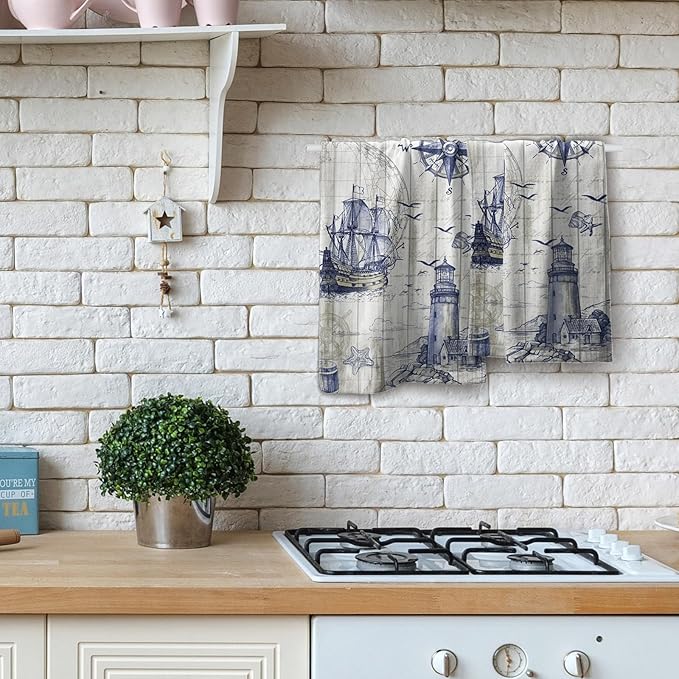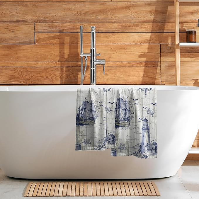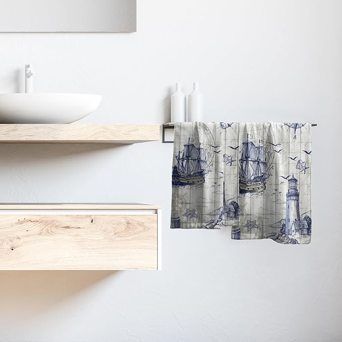 Giwawa Nautical Lighthouse Hand Towels Set of 2 Sailboat Anchor Decorative Bath Towels Kitchen Dishcloth Soft Face Towel for Home Gym Hotel Spa