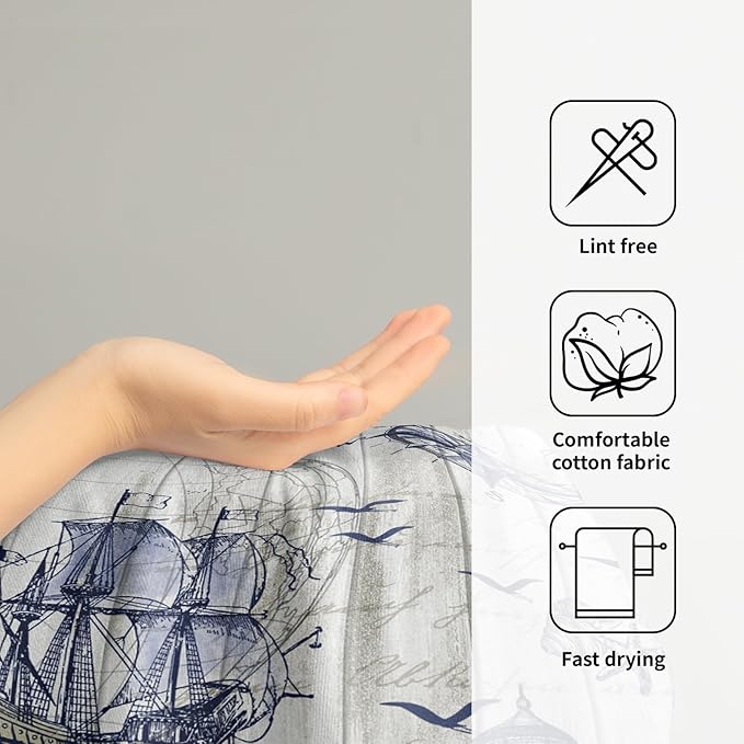 - 【Soft Material】The navy anchor hand towels for bathroom made by polyester microfiber front, white premium cotton back for quick drying. Lightweight, super soft and skin-friendly.