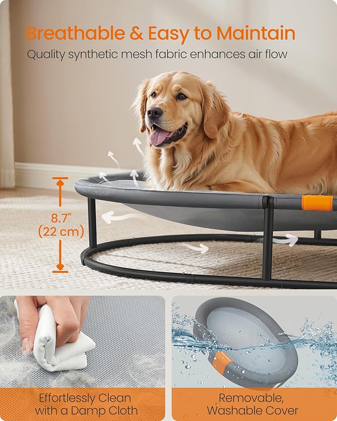 Feandrea Pet Bed, Cat Hammock, Elevated Cat Bed for Multiple Cats, with Removable Washable Mesh, for Pets up to 120 lb, Oval, Gray UPCB005G01