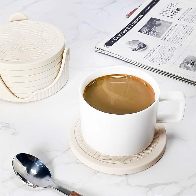 - Anti-slip design: Our silicone layer prevents coasters from sliding on any surface. Enjoy worry free of use, protect your desk or table from scratches and watermarks, and no stains left.