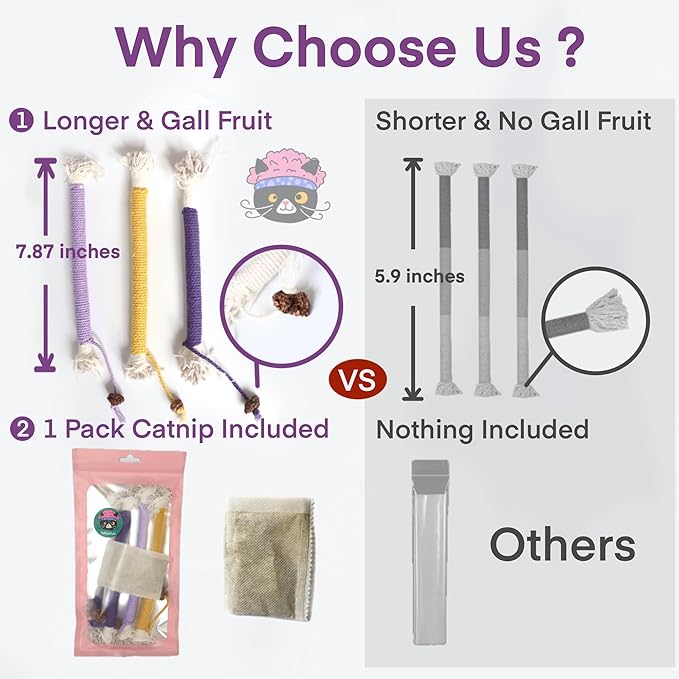 - 【Digestive Health Booster】Beyond mere entertainment, our cat teething chew toy doubles as a dental aid with numerous health benefits. Packed with endolipids from gall fruit, it aids digestion and prevents hairballs in cats. Additionally, we offer an extra pack of catnip for cats, enhancing your kitten's appetite and promoting digestion while tackling hairball issues