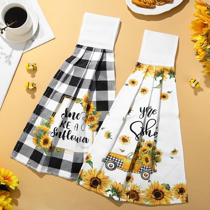 - Broad Application: ideal for use in your kitchen, bathroom,farmhouse, summer party, and so on, the bath hand towel blends function with style; Their sunflower theme uplifts the ambiance, making them a practical choice for various interior spaces;Each piece is equipped with a hanging loop preventing accidental slips and falls of the towel to the floor, providing quick access