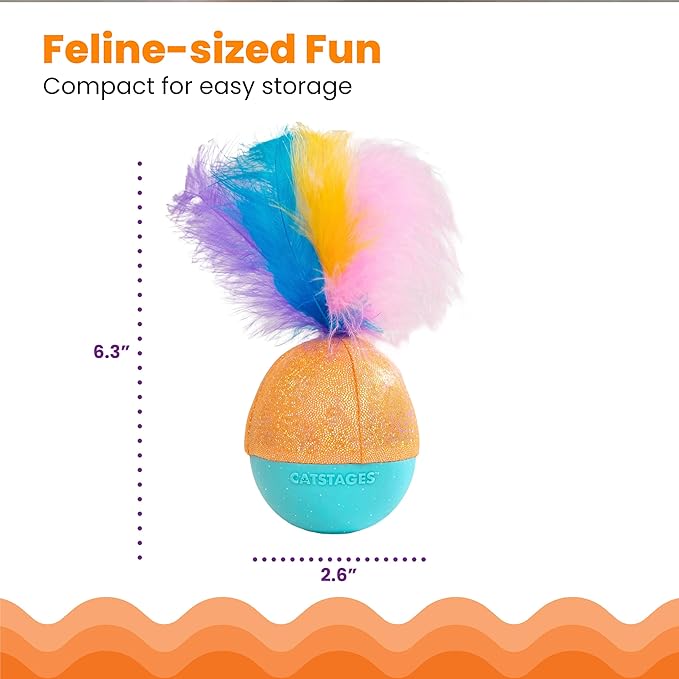 - Attached feathers and sparkle fabric are irresistible teases for curious cats, plus they're nice for you to look at