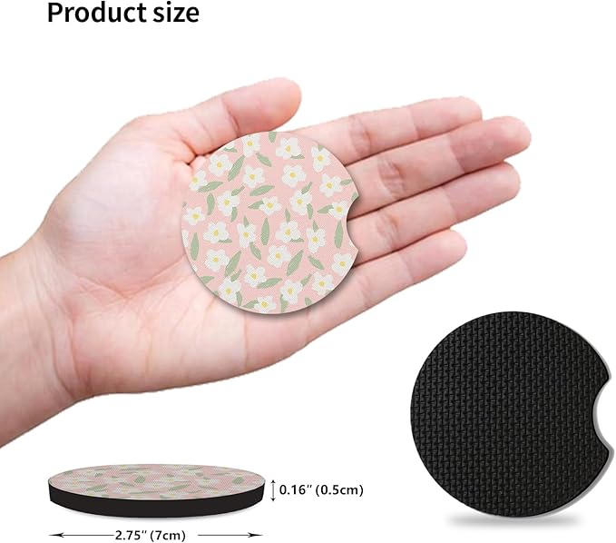 Car Cup Holder Coasters.Car Coasters for Drinks Absorbent,2 Pack Cute Flower Leaf Car Coasters for Women,Cute Auto Accessories with A Finger Notch for Easy Removal 2.75"