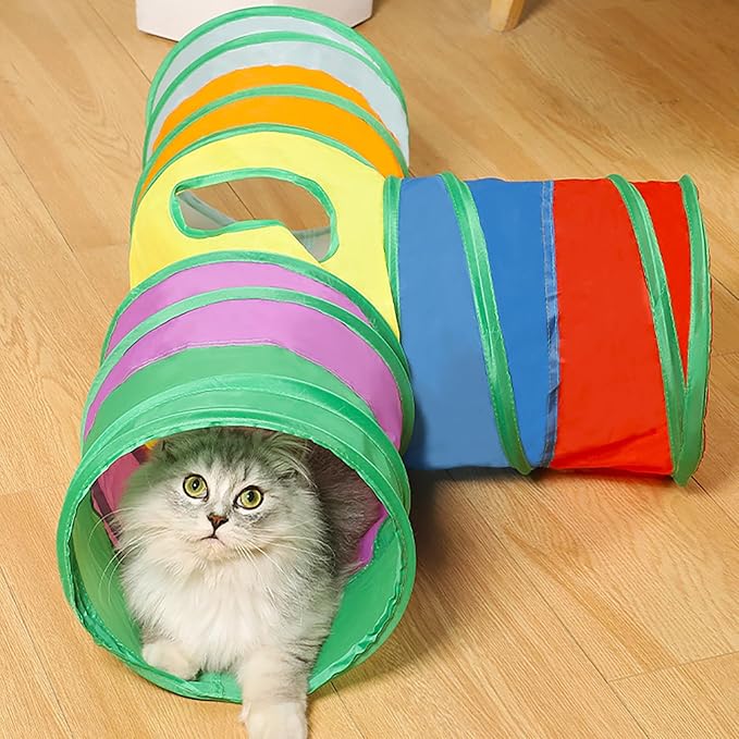 - MUCH FUN: Cat tube tunnel is pet tunnel and cat toys for indoor cats interactive, which kitten loves playing hide and seek to make much fun. There are one or two interactive cat toy balls hanging at end of cat toys tunnel