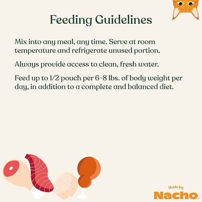 Made by Nacho Wet Cat Food Homestyle Bone Broth Variety Pack Hydrating Food Topper, Chicken (x4), Turkey (x4), and Tuna and Cod Flakes (x4) Limited Ingredients, 2.5oz (12 pouches)