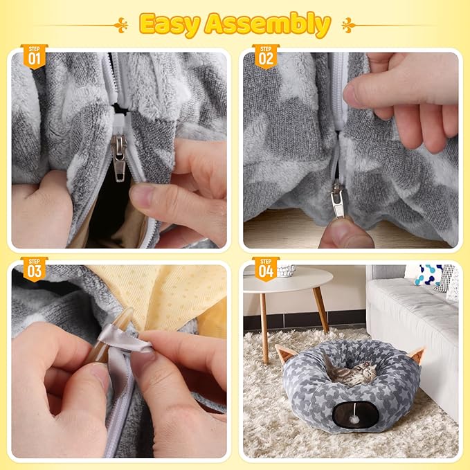 - Easy Assembly: The tunnel can be easily set up by simply pulling the zipper. It can be folded and linked to form a circle, making it a convenient choice for cat owners